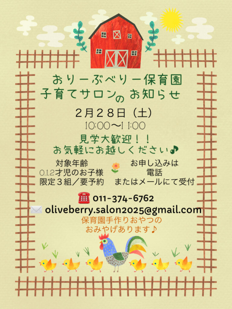 TOP > 記事一覧 > 第9回子育てサロンのご案内